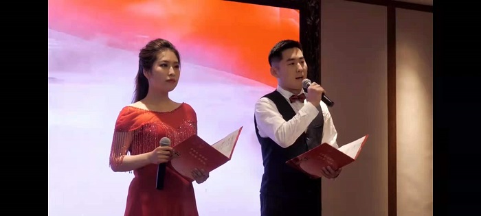 诵读会伊始,由我公司业务部刘庆远和李嘉欣率先登场,伴随着精美制作的视频和慷慨激昂的音乐声,徐徐朗诵《相约一百个春天》,整个朗诵过程感情有起有伏、声容并茂、一气呵成,观众听得如痴如醉。待朗诵结束后,整个会场响起了热烈的掌声,久久不能散去,观众的热情也随着这个节目的结束而被调动了起来。在温绍鑫老师的精彩点评过后,评委们给出了87.14分的高分。