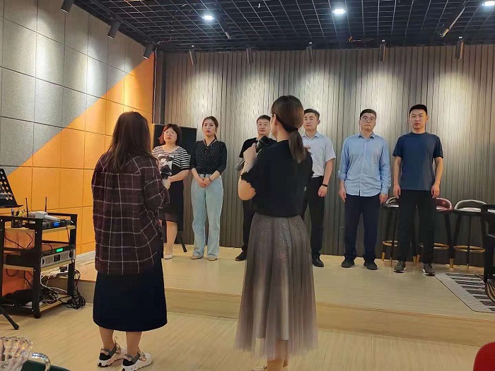 为迎接党的百年华诞,更好地抒发员工内心的爱国热情,6月4日上午在总经理张宪民和财务总监王红的带领下,担保公司部分员工前往西米艺术培训中心请专业教师对参加歌咏比赛的员工进行歌唱培训。