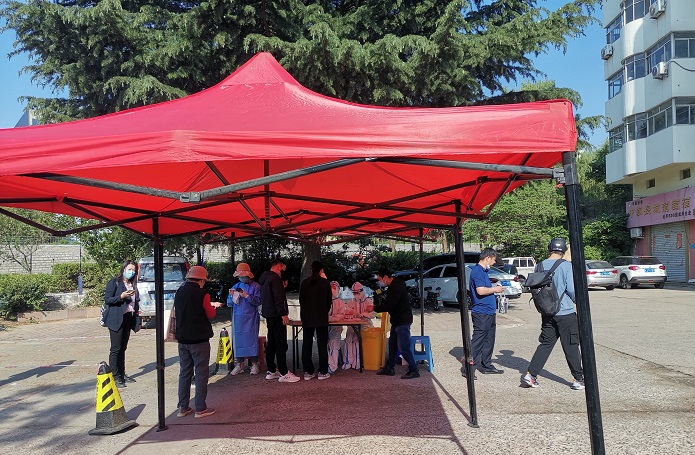 5月17日24日分别参加了第八轮、第九轮志愿服务核酸检测,公司党支部组织党员志愿者到“双报到”单位金山社区助力开展常态化核酸检测工作,志愿者们在社区核酸检测点帮助维护现场秩序、扫码登记。“请大家佩戴好口罩,排好队,保持一米以上安全距离,提前填报好信息……”志愿者穿梭在排队人群中,维持疏导秩序、登记核对信息、引导居民扫描二维码、耐心为居民解说注意事项、发放核酸完成贴纸等工作,确保了核酸检测工作的高效有序进行。
