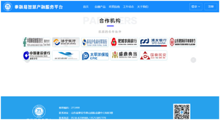 泰融易智慧产融服务平台是泰安市政府公益银企对接平台,隶属于山东省泰山智慧产融信息服务有限公司,是一个立足于集约高效、共享开放、安全可靠、按需服务的,以为中小微企业服务为宗旨的信息服务平台。平台通过大数据、金融科技等搭建起金融机构和企业互联互通的综合性产融服务桥梁,提高企业和金融机构对接过程中的效率和服务质量。
