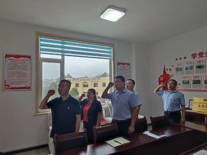 随后,举行新党员入党宣誓仪式。由支部书记吴雷钢带领新党员及与会党员面对鲜红的党旗和庄严的誓词,共同高举右拳,庄严宣誓。铿锵有力的宣誓,表达了同志们对党的无限忠诚、热爱和听党话、跟党走的坚定决心。