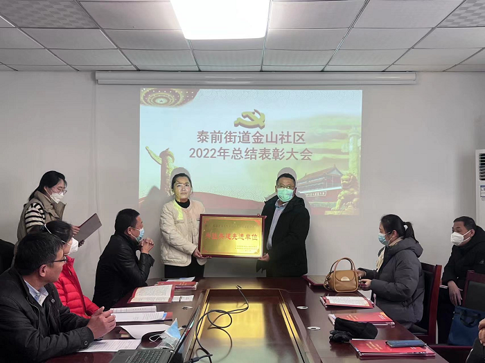 12月30日,泰山区泰前街道办事处金山社区召开2022年总结表彰大会,对“共驻共建先进单位、优秀个人”进行表彰。泰安市国泰民安融资性担保有限公司荣获2022年度“共驻共建先进单位”荣誉称号。