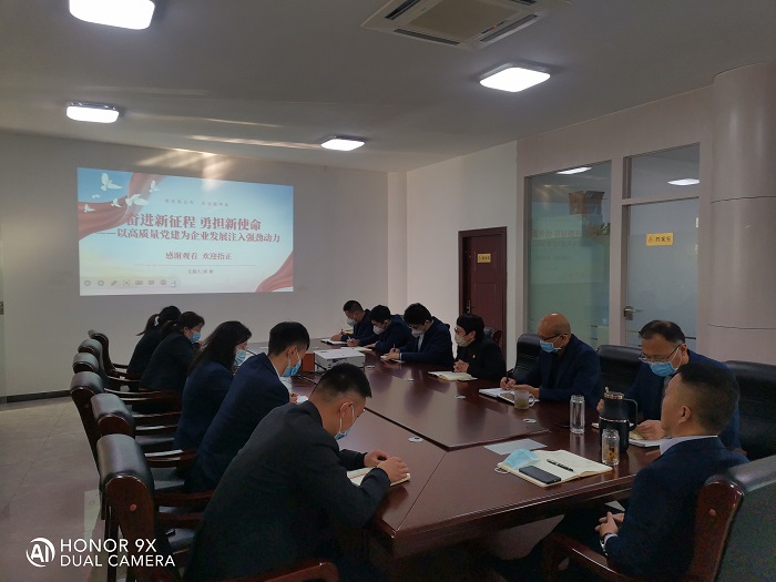 刘彬同志汇报了《<奋进新征程 勇担新使命—以高质量党建为企业发展注入强劲动力>关于2022年党建工作总结和2023年工作计划安排的报告》。2022年是党的二十大召开之年,是踏上全面建设社会主义现代化国家、向第二个百年奋斗目标进军新征程的开局之年。在以习近平同志为核心的党中央坚强领导下,公司党支部坚持以习近平新时代中国特色社会主义思想为指导,以迎接宣传贯彻党的二十大为主线,紧紧围绕公司经营业绩目标任务,有效发挥党组织和党员在推进经营改革发展中的重要作用,捍卫“两个确立”、做到“两个维护”更加坚定坚决,学习宣传贯彻党的二十大精神热潮迅速兴起,“强党建 促发展 见成效”主题活动取得显著成效,政治站位进一步提高,基层基础工作持续夯实;宣传思想工作更加凝心聚力,公司意识形态总体向善向好。加强党员教育管理进一步夯实,干部人才队伍建设不断加强。从严管党治党责任进一步压实,持续开展“廉政国资 廉洁国企”主题教育活动,党风廉政建设进一步增强。“我为群众办实事”活动深入推进。党建工作促经营发展成效进一步彰显,高质量党建引领保障高质量发展取得新成效。
