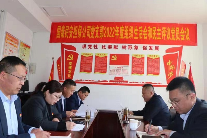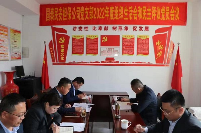 根据国泰民安集团党委《关于召开2022年度基层党组织组织生活会和开展民主评议党员的通知》要求,3月15日,国泰民安担保公司党支部召开2022年度组织生活会和民主评议党员大会。国泰民安集团党委委员、副总经理张剑同志到会指导,国泰民安担保公司党支部书记、董事长吴雷钢主持会议,公司党支部全体党员参加会议。