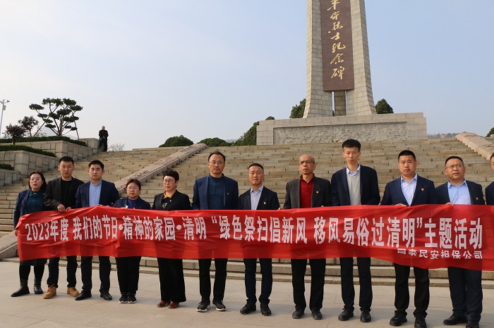 为传承红色基因,赓续红色血脉,缅怀革命先烈,同时进一步弘扬文明新风,倡树文明祭扫,3月28日,在清明节到来前夕,国泰民安担保公司在泰安革命烈士陵园开展我们的节日·精神的家园·清明“绿色祭扫倡新风·移风易俗过清明”主题活动,公司全体人员参加此次活动。