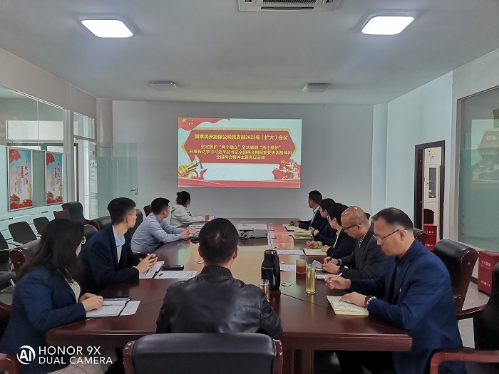 会议要求,公司全体党员干部员工要全面贯彻落实习近平总书记重要讲话精神和全国两会精神,以习近平总书记重要讲话精神为标尺,持续检视和校准公司的高质量发展,并围绕担保业务经营发展工作始终在正确的轨道上运行前进,推动公司再谱新篇章、再上新台阶作出三个方面部署。