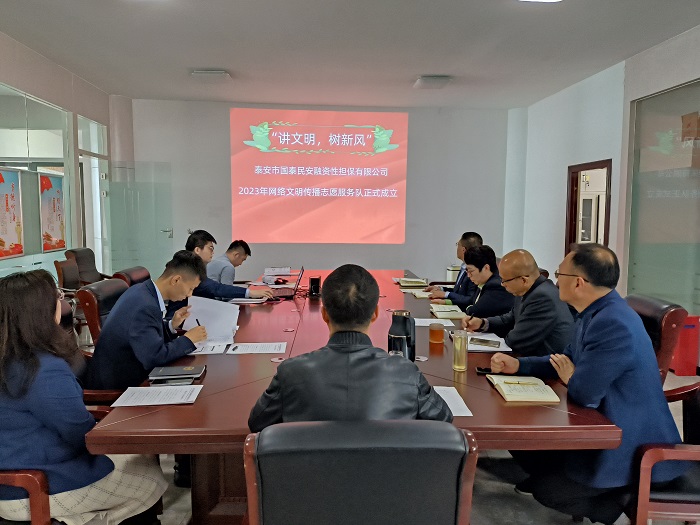 为进一步加强网络文明建设的各项工作要求,3月20日,国泰民安担保公司2023年度“网络文明志愿服务队”正式成立。全体干部职工承诺将广泛参与网络文明志愿者活动,在广大网民中传播文明、引领风尚。