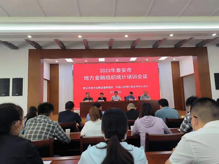 此次会议是由泰安市地方金融监管局、人行泰安市中心支行联合组织召开的,会议由地方金融监管局党组成员、副局长张帅主持,人行泰安市中心支行党委成员、副行长赵尊振从金融统计工作的重要意义、取得的成绩及面临的问题等方面发表了重要讲话,并对统计工作开展以来各方工作人员加班加点付出的努力给予了充分肯定。
