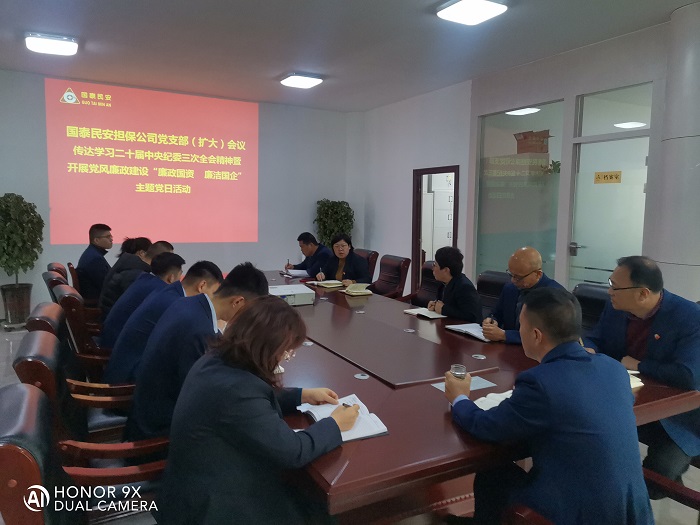 1月31日,国泰民安担保公司党支部召开(扩大)会议,传达学习二十届中央纪委三次全会精神暨开展党风廉政建设“廉政国资 廉洁国企”主题党日活动。公司党支部书记、董事长吴雷钢主持会议并讲话,公司全体党员干部员工参加会议。