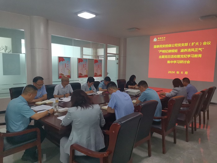 6月3日,国泰民安担保公司党支部召开(扩大)会议,组织开展“严明纪律规矩 涵养清风正气”主题党日活动暨党纪学习教育集中学习研讨会。公司党支部书记、董事长吴雷钢主持会议并讲话,公司全体党员干部参加学习。