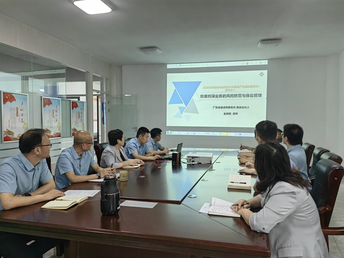 本次培训由北京大学法学院法律硕士,广东卓建律师事务所高级合伙人,卓建金诚律师团队负责人金振朝老师线上直播授课。培训内容主要围绕批量担保业务的风险防范及保后管理等内容展开,授课过程中,结合真实案例,为大家生动地讲解了批量担保业务法律风险防范技巧。本次培训旨在强化风险防控意识,全面提升担保业务风险防范能力,动态把握资产质量,提升操作水平及审查的风险防范,进一步夯实公司担保业务规范化、标准化的基础。