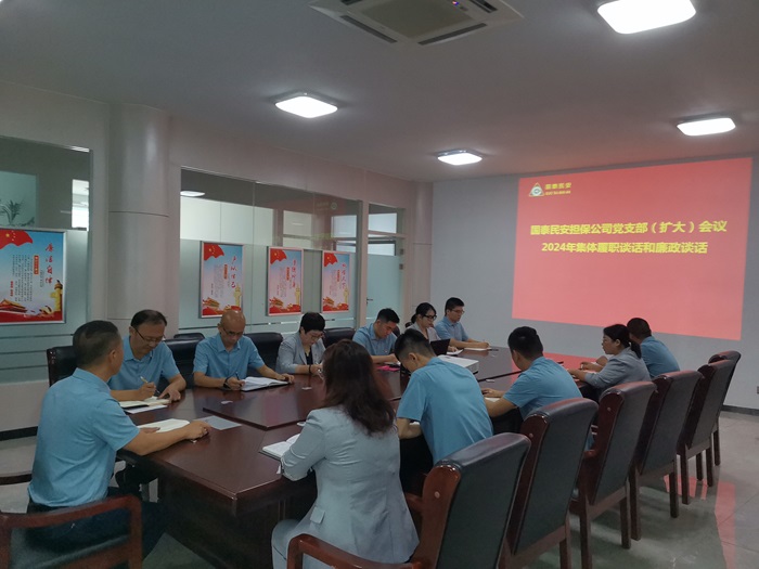 为进一步压实全面从严治党政治责任,提升公司党员干部廉洁自律意识,促进干部履职担当,持续营造风清气正的政治生态,9月4日,国泰民安担保公司党支部召开党员(扩大)会议,传达学习党纪党规,并由公司党支部书记、董事长吴雷钢对公司全体党员干部进行集体廉政谈话和履职谈话。